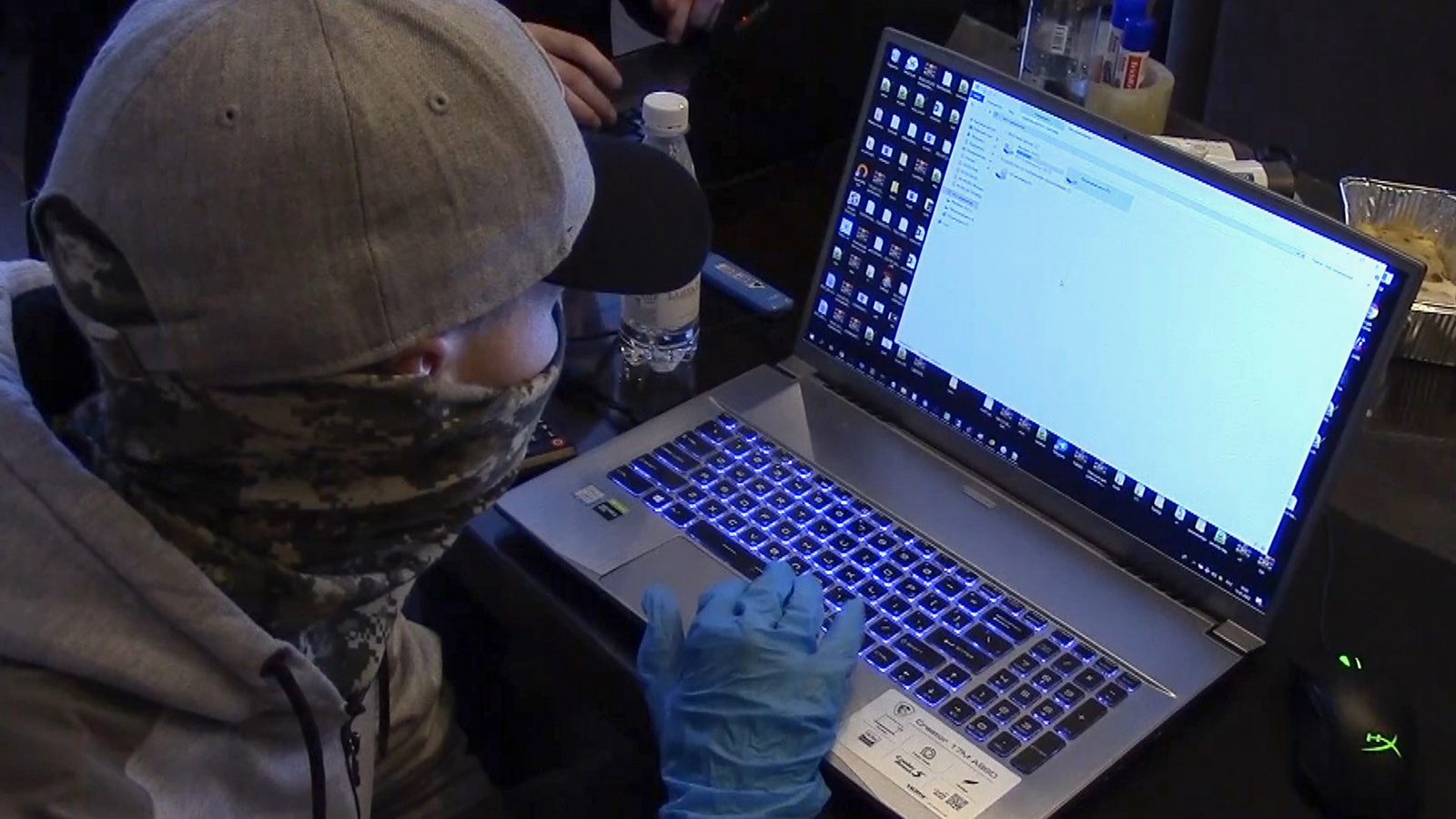 Сотрудник ФСБ РФ во время изучения компьютера одного из задержанных хакеров группировки REvil (Фото ЦОС ФСБ РФ/ТАСС)