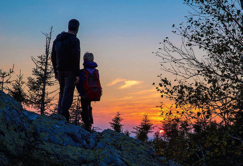 От дома, в котором останавливаются приезжающие студенты-практиканты и туристы вроде нас, устремляется вверх тропа, ведущая к горе Северный Басег. Несмотря на то что угол наклона горы порой достигает 90 градусов, по тропе идти нетрудно: она вымощена деревянными досками, а на крутых склонах держишься за веревочные поручни. С каждым шагом по пути к вершине открываются все более красивые виды: один горный пояс сменяется другим, на подходе к вершине – черничные поля, по которым в безлюдное время гуляют те самые местные медведи. Смотришь вверх – и уже видно, как на самой высокой точке скалистой горы возвышается кованый крест.