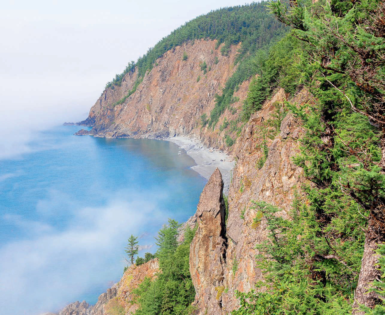 Погода здесь часто меняется. То солнце и жара до 30, то вдруг наползет ледяной туман и уже у вас от холода изо рта идет пар. Или начнется шторм – и все катера и лодки разбегутся искать укрытия в руслах рек. Даже ветер дует потоками – морозный с Охотского моря, горячий с суши. В июле кое-где лежит снег, а бухту может запереть льдами.