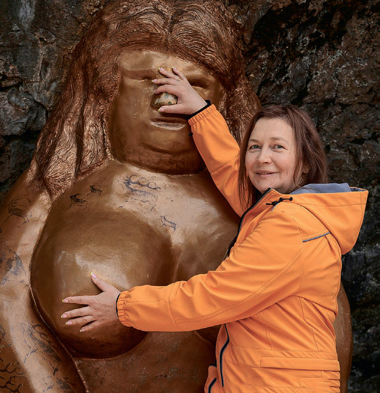 Знакомство с Алтаем началось с посещения горнолыжного комплекса «Манжерок», строительство которого уже несколько лет ведет Сбербанк. По канатной дороге мы поднялись на гору Малая Синюха на высоту 1020 метров. Нас ждали живописные пейзажи, таежный лес и вкуснейший свежесваренный кофе с кедровыми орешками. Главный аттракцион для туристов – дотронуться до разных частей тела огромной Золотой бабы (Алтын-Ай), естественно, с загадыванием всех необходимых желаний. Считается, что она покровительница всего живого, богиня плодородия и богатства. Если прикоснуться к ней, то мужчинам она подарит мужество и силу, а женщинам – красоту и плодовитость.