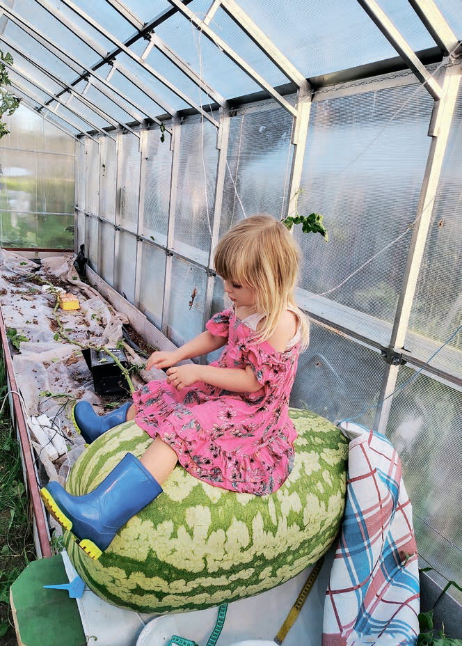 Уже после нашего отъезда хозяйка необычного огорода срезала свой любимый арбуз. За 79 дней роста его вес достиг 88,24 килограмма. Таким образом, она побила свой собственный рекорд – в прошлом году Ольга вырастила зеленого гиганта весом 81,15 килограмма.