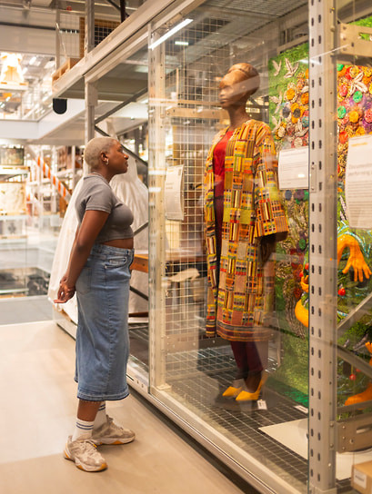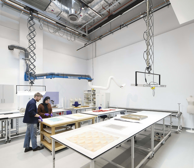Архитекторы хотели, чтобы люди в хранилище Виктории и Альберта «дышали тем же воздухом, что и артефакты». Для этого они разработали гибрид выставочного пространства, архива и хранилища. Стеллажи, ящики и витрины тщательно организованы как часть маршрута со 100 мини-выставками, которые прерывают утилитарную сетку историями, объектами и неожиданными сопоставлениями. Пол прозрачный, так что видно, как музейные работники разгружают и упаковывают предметы.