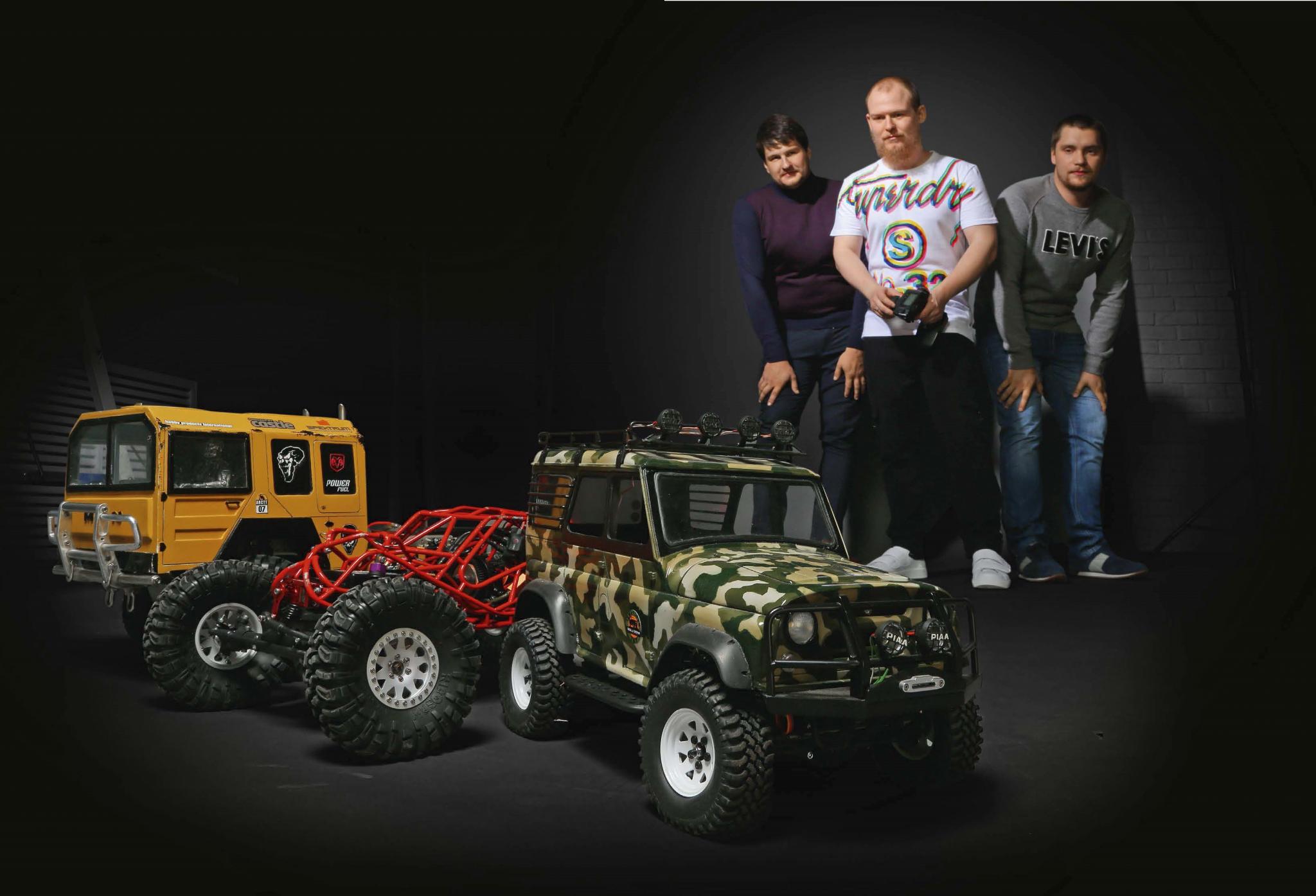 Даниил Осипов терпеливо объясняет мне, что в парке я видел сразу три вида моделей. Трофи копируют автомобили для трофи-рейдов, они прирожденные гряземесы. В них все как на их больших прототипах: лебедки, домкраты, запасные колеса – только в миниатюре. Задача у них соответствующая – продвижение по сложному маршруту с прохождением контрольных точек и преодоление всех препятствий на пути: ручьев, завалов, корней, оврагов, болот. Всего, что встречается, когда заканчиваются дороги или тропинки. Более схематичные автомобили предназначены для триала – технического преодоления, как правило, искусственно созданных препятствий, например бетонных блоков. Каркасные рок-баунсеры – своеобразный спецназ, который должен пройти там, где не пройдут первые два типа. Но, как говорит Даниил, все зависит от водителя, так как принципиально все модели одни и те же, с одинаковой ходовой, подвеской и двигателями. И как в настоящих трофи- и триал-соревнованиях, мастерство водителя решает многое. Только, преодолевая бездорожье на большом автомобиле, он сидит внутри, а в нашем случае – идет в резиновых сапогах по колено в грязи рядом. Впрочем, штурман трофи-рейдов тоже значительную часть времени проводит в грязи рядом с автомобилем.