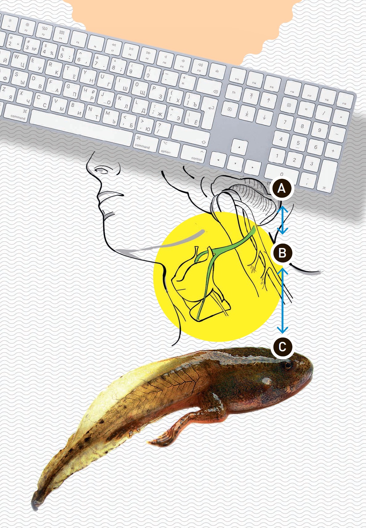 У клавиатуры и головастика?