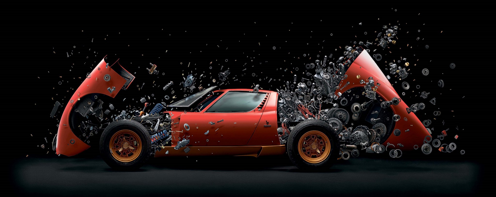 Самая известная серия работ Фабиана Офнера называется «Дезинтеграция» (Disintegrating) – несколько противоречивое название: в интервью Фабиан всегда подчеркивает, что изображает рождение автомобиля, а не прекращение существования. На гиперреалистичных фото – россыпи деталей винтажных спортивных автомобилей. Первыми стали три: Mercedes-Benz 300 SLR Uhlenhaut Coupé с дверями конструкции «крылья чайки» (1955), изящный черный Jaguar E-Type (1961) и Ferrari 330 P4 (1967). Фабиан брал масштабные модели автомобилей, разбирал до самых маленьких частей и фотографировал детали в нужных ракурсах, после добавляя их к снимку собранной части машины в фоторедакторе.