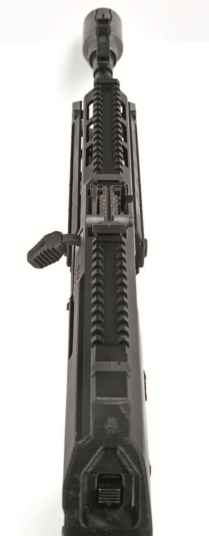 Первое – нам хотелось сделать более удобное и длинное цевье, которое обеспечивало бы вывешенность ствола (чем меньше точек касания ствола с другими частями автомата, тем выше точность) и дополнительное удобство – возможность закрепить тактический фонарь, лазерный целеуказатель, сошки, дополнительные рукоятки.