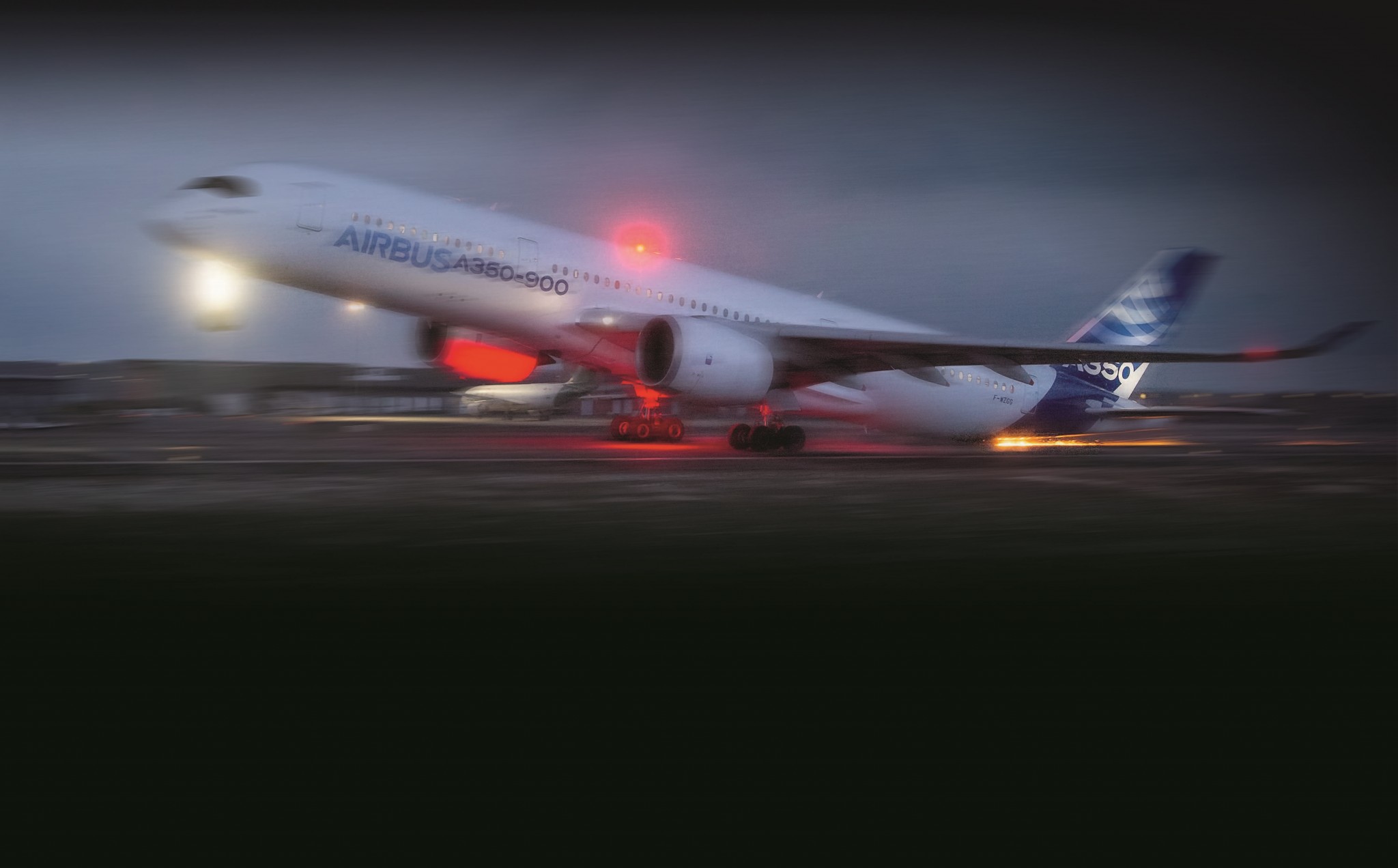 На самом деле портить даже испытательный летный образец нового лайнера никому не хочется, и поэтому в тестовых полетах, в которых предполагается контакт с полосой, используется специальный демпфер (пята, каблук), который монтируется на хвостовую часть самолета. Это именно из него высекается красивый сноп искр. Естественно, демпфер постепенно изнашивается, хотя в целом это довольно крепкое и износостойкое устройство. В отчете об испытаниях по установлению минимальной скорости отрыва для лайнера A350 говорилось, что на аэродром под Парижем, где проходили тесты, было доставлено три демпфера, но обошлись всего одним.