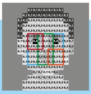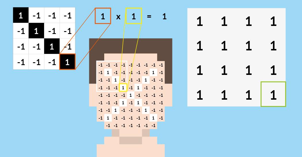 Почему так быстро? В описанном алгоритме не отмечен один важный момент. Чтобы вычесть яркость одной части изображения из другой, понадобилось бы складывать яркость каждого пикселя, а их может быть много. Поэтому на самом деле перед наложением маски матрица переводится в интегральное представление: значения в матрице яркости заранее складываются таким образом, чтобы интегральную яркость прямоугольника можно было получить сложением всего четырех чисел.