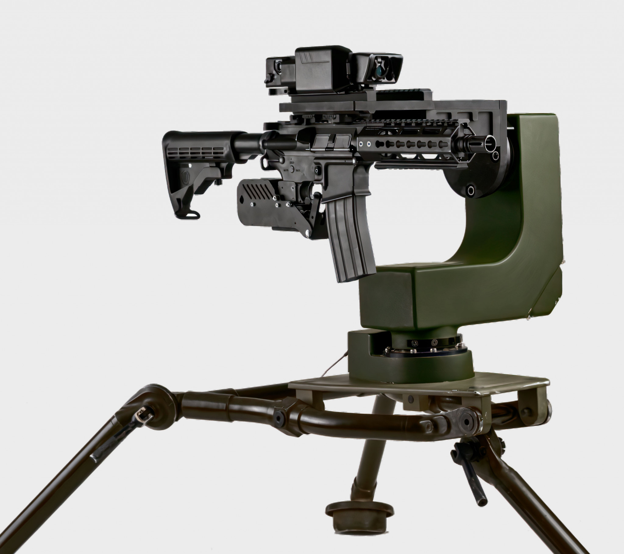 В 1997 году вышел фильм «Шакал» с Брюсом Уиллисом в главной роли. Многим зрителям этот боевик запомнился применением крупнокалиберного пулемета с дистанционным управлением, при помощи которого герой Уиллиса пытался убить первую леди США во время ее публичного выступления. Роботизированный пулемет, спрятанный в салоне минивэна, производил на зрителей не меньшее впечатление, чем сам Брюс. В фильме пулемет назывался Polish ZSU-33 14.5 mm и был фейком – его собрали на основе советского КПВ, крупнокалиберного пулемета Владимирова, одного из самых мощных в мире. Впрочем, сама по себе концепция – пулемет на дистанционно управляемом опорно-поворотном столе (Remote Controlled Weapon Station, RCWS) – вполне реальная, и мелкосерийно такое оружие производят в США и Израиле. На подобные системы обычно устанавливают серийные самозарядные варианты: пулеметы, штурмовые винтовки и даже крупнокалиберный Barrett.