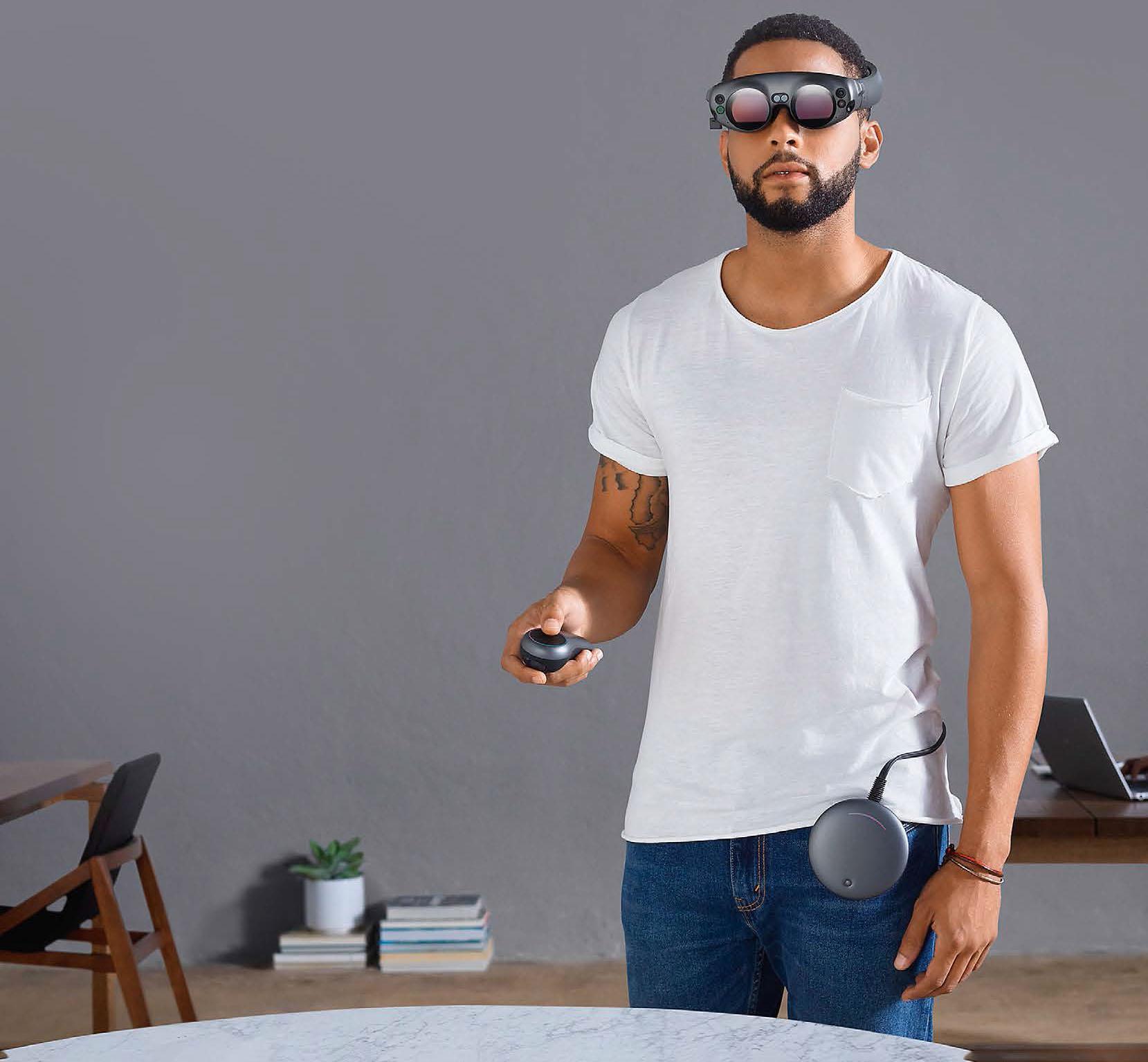 После тяжелой и продолжительной разработки стартап Magic Leap представил долгожданную платформу дополненной реальности (AR). Еще в 2011 году создатель хирургического робота Mako Рони Абовиц продал свою компанию ради новой затеи – и не прогадал. В Magic Leap вложились Alibaba, Google и Qualcomm, и сегодня ее капитализация приближается к 6 млрд долларов, хотя обещанный продукт все еще готовится к выходу на рынок. Первую версию AR-системы поставляют лишь разработчикам и тестерам: «киберпанковские» очки Lightwear через провод связываются с легким и компактным компьютером, который крепится на поясе, как старые CD-плееры, и управляется жестами и взглядом пользователя. Он анализирует обстановку в режиме реального времени и проецирует на линзы очков образы окружающего мира, привнося в них цифровые «призраки» дополненной реальности: полезную информацию или виртуальных роботов, готовых к игровой схватке.