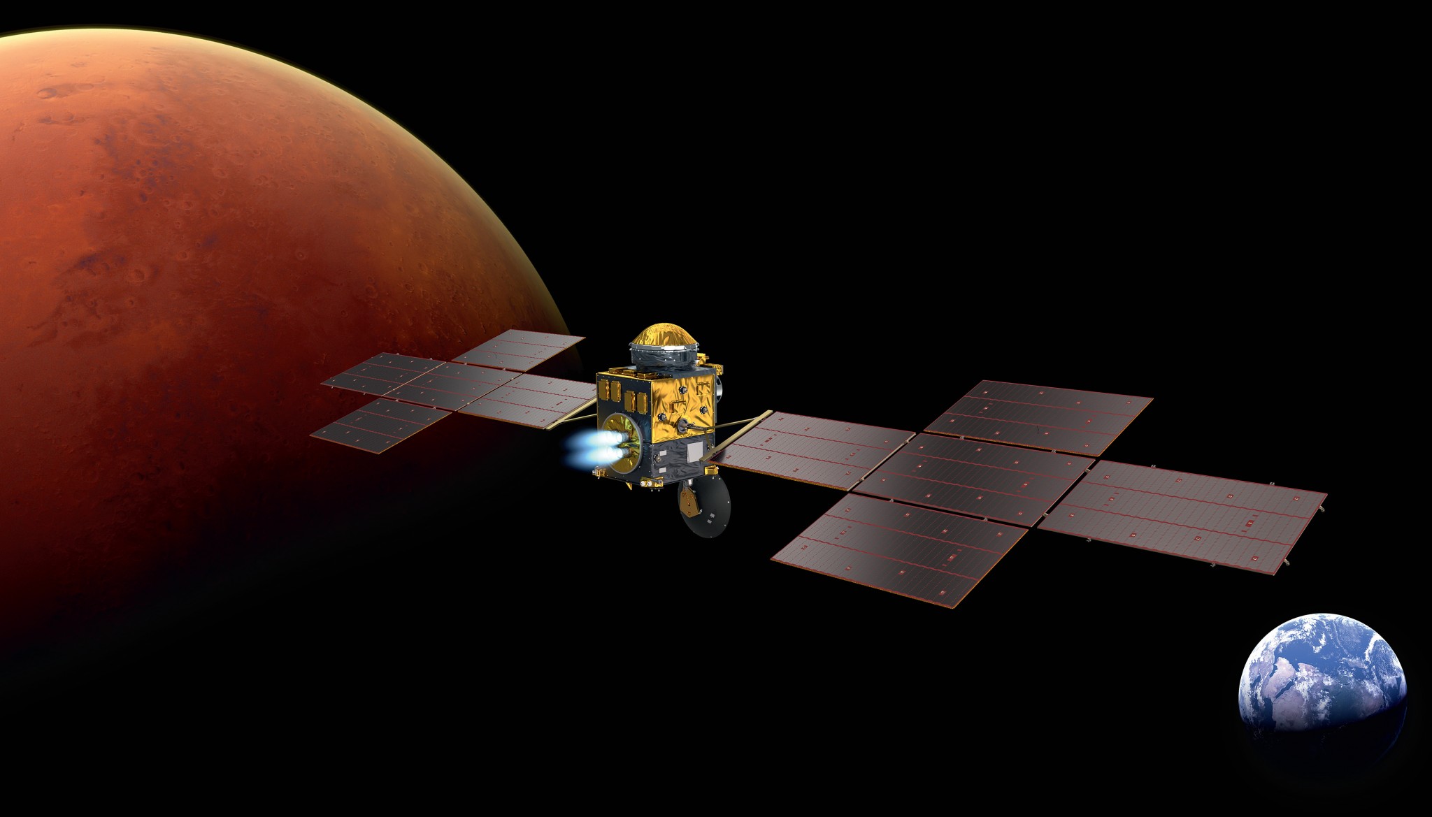 В 2026 ГОДУ К МАРСУ ПЛАНИРУЕТСЯ ОТПРАВИТЬ СОВМЕСТНУЮ ЕВРОПЕЙСКО-АМЕРИКАНСКУЮ МИССИЮ, которая должна вернуться через пять лет и доставить на Землю немного марсианского грунта. NASA отвечает за спускаемую платформу, которая примет собранные марсоходом Perseverance образцы и поднимет их на орбиту. А в ESA занимаются орбитальным аппаратом ERO, который примет на борт марсианский реголит и отправится в обратный путь. Окончательное соглашение еще не достигнуто, и документы не подписаны, однако европейское космическое агентство уже поручило концерну Airbus работу над аппаратом ERO. По имеющимся данным, первый «межпланетный грузовик» будет весить около 6500 кг и энергию для перелета ему обеспечат панели солнечных батарей с размахом крыльев 35 м.