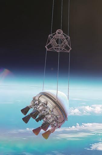 Первая ступень с шестью жидкостными реактивными двигателями тягой по 15 кН должна отделяться от стратостата на высоте порядка 30 км.