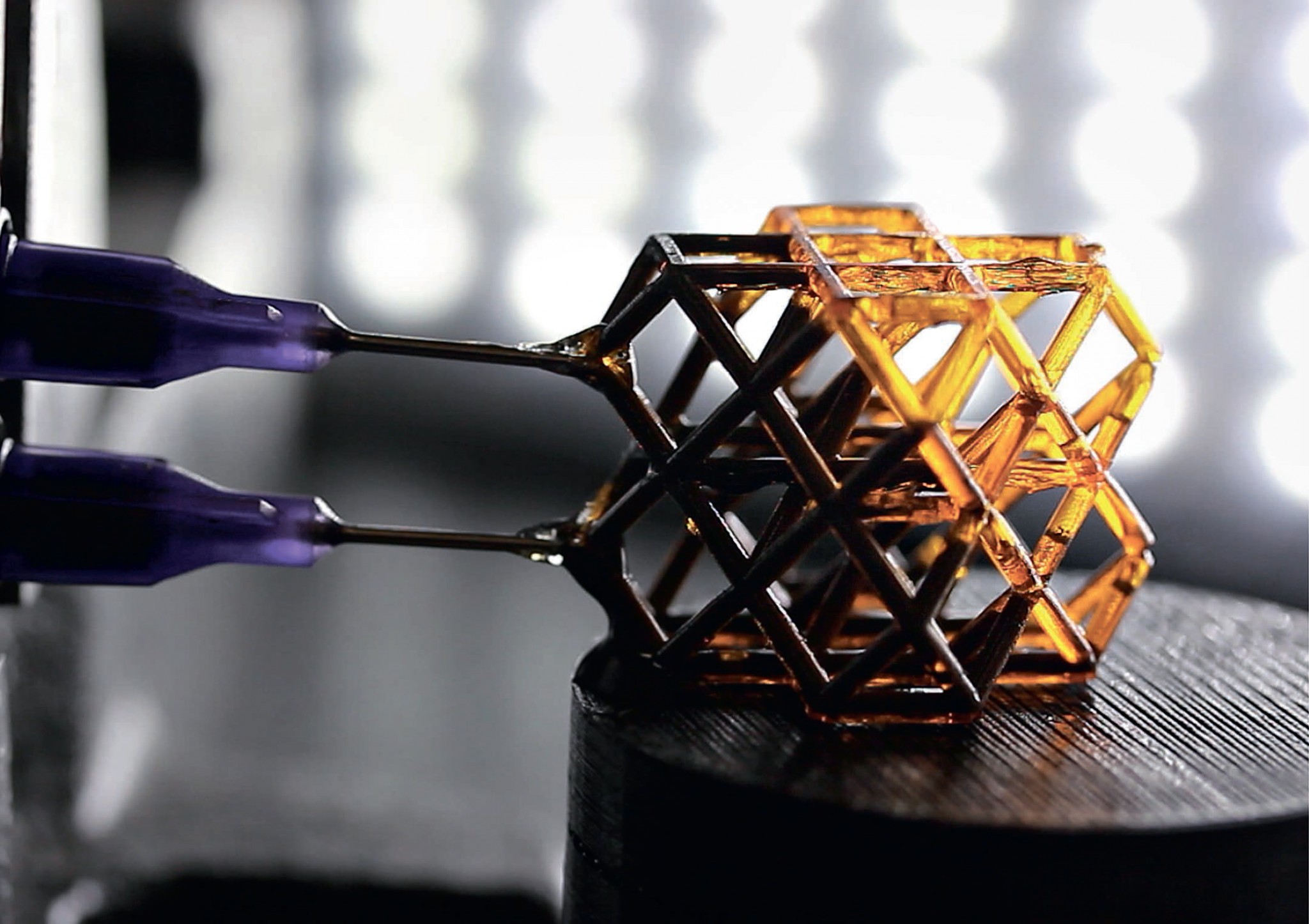 Инженерам словно бы и 3D-печати мало: в последние годы все чаще появляются 4D-структуры, полученные с помощью принтеров, но способные изменить свои свойства, что добавляет им еще одно «измерение» сложности и функциональности. Уже продемонстрированы структуры, меняющие цвет или форму под действием температуры, влажности и т. п., – а разработчики Ливерморской национальной лаборатории создали метаматериал, управляемый внешним магнитным полем. Для этого они распечатали на 3D-принтере сложную структуру из полых полимерных трубочек, которую заполнили вязким раствором наночастиц железа. В «расслабленном» состоянии жидкость текуча, и метаматериал остается гибким. Однако приложение магнитного поля заставляет железные частицы выстраиваться вдоль его магнитных линий – и структура почти моментально твердеет.