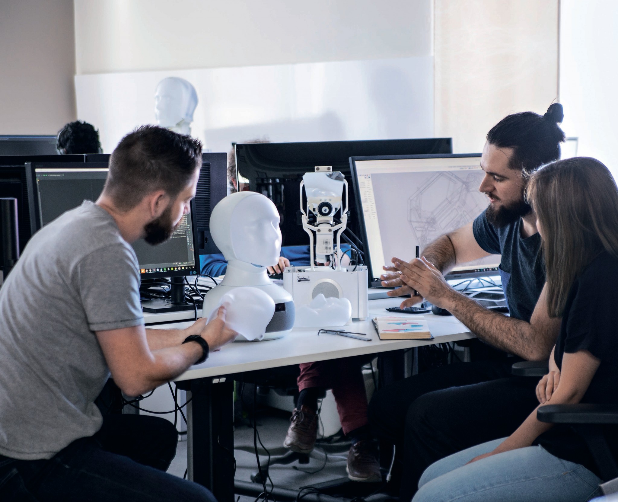 Парадокс Моравека оказался едва ли не главным выводом, к которому пришли поколения создателей роботов и искусственного интеллекта. Согласно ему, сложные когнитивные процессы воспроизводятся сравнительно легко, зато простые, на первый взгляд, задачи, напротив, требуют огромных ресурсов. Недаром «умные» помощницы – Alexa, Алиса и другие – прекрасно понимают заданные вопросы и правильно формулируют ответы, но до сих пор делают это таким пустым и безэмоциональным тоном, что многие пользователи не могут нормально взаимодействовать с ними. Придать голосовым ассистентам немного человечности позволит система Furhat. Подвижное изображение лица проецируется на экран, имеющий форму головы, а широкоугольная камера и направленные микрофоны отслеживают положение человека в пространстве, позволяя системе следовать за ним и реагировать на его состояние.