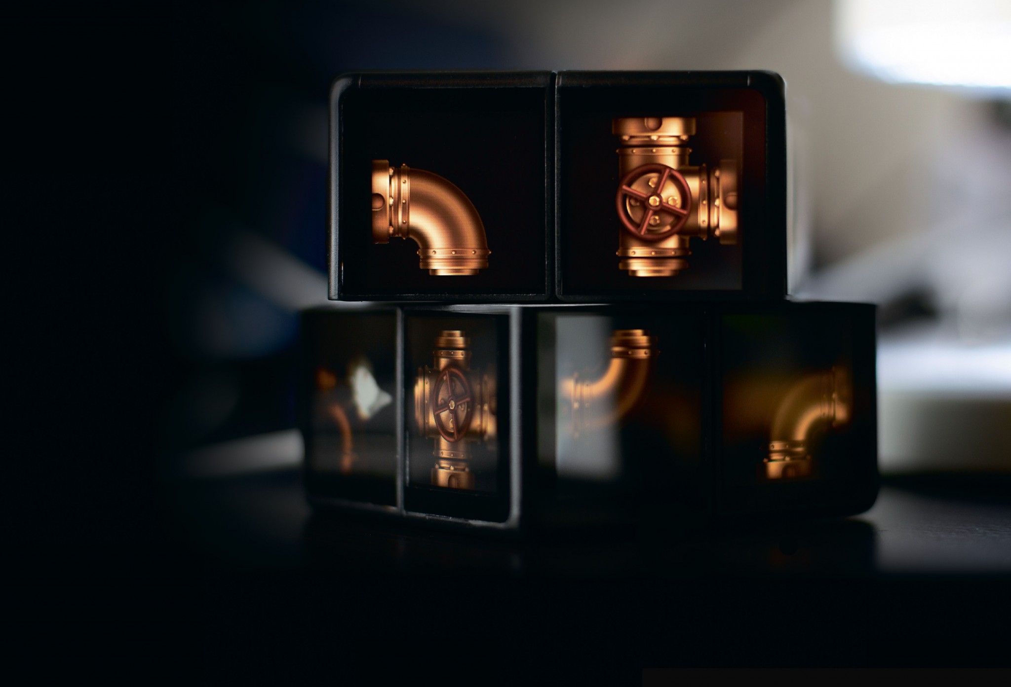 Постепенно Илья пришел к идее делать взаимодействующие дешевые кубики с процессорами. Дня три ходил и непрерывно думал о новой игре, тестируя свои идеи на сыне. Переставляя кубики на плоскости, Илья все равно получал аналог детских игровых кубиков – игрушки для маленьких детей. А хотелось сделать универсальную игру-головоломку, которая захватывала бы все возрастные аудитории. «Как, например, кубик Рубика, – неожиданно сказал сын. – Вот и сделай такой трехмерный кубик с гранями-экранами, чтобы герои игры могли перемещаться с грани на грань». Прокрутив идею в голове, Илья решил, что это может быть интересным, и стал искать патентные аналоги. Оказалось, никто ничего подобного не делал даже отдаленно. Решил создать прототип, сократив размерность с 3 x 3 до 2 x 2.