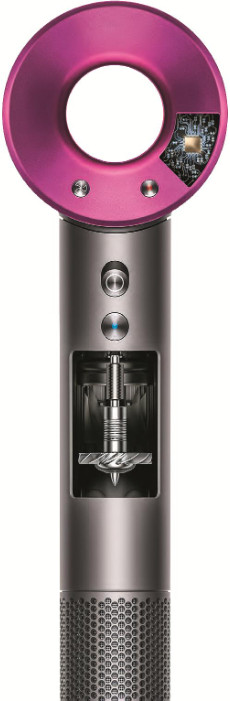 В случае с феном мотор надо было спрятать в ручку. Никто в мире таких компактных, мощных и малошумных моторов не выпускал. В разработку фена Dyson Supersonic компания вложила £50 млн, бóльшая часть из которых была потрачена на запатентованный двигатель Dyson V9 с цифровым управлением. Над самым миниатюрным инновационным двигателем Dyson работала специальная команда из 15 инженеров, которым удалось создать шедевр: новый двигатель до восьми раз мощнее, чем двигатели других фенов, и весит до двух раз меньше остальных. Двигатель агрегирован вместе с уникальной миниатюрной турбиной. Инженеры компании оснастили крыльчатку турбины 13 лопастями вместо обычных 11, переведя бóльшую часть паразитного шума в область частот, не воспринимаемых человеческим ухом.