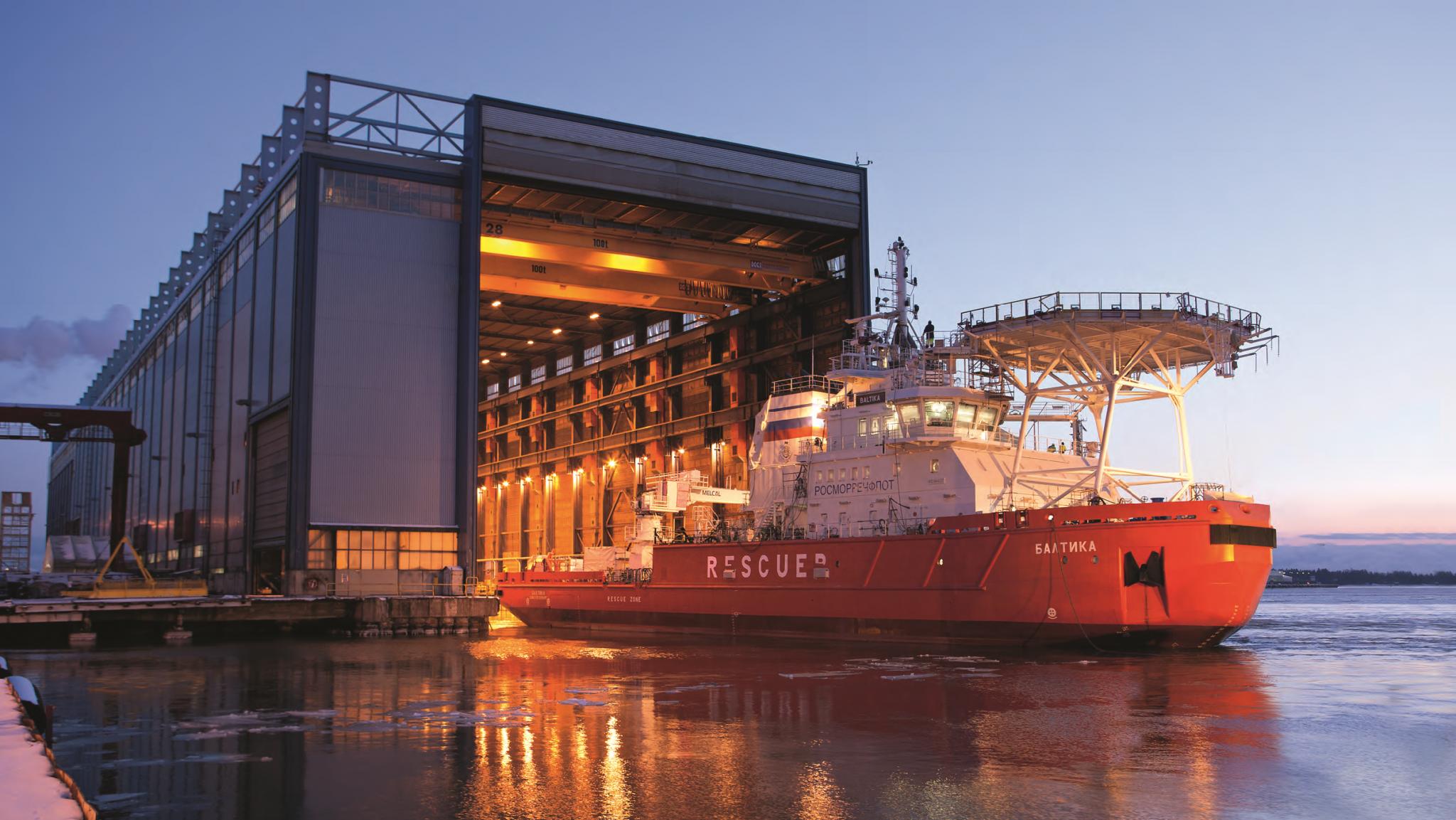 Однако проект встал – заказов на треугольный ледокол не было. Скандинавы доработали идею: в 2002 году они решили применить асимметричную форму корпуса не только для ломки льда, но и для борьбы с разливами нефти и проведения аварийно-спасательных операций на море. Для ломки льда был приспособлен левый выпуклый борт, плоский правый предназначался для сбора нефти. Новому ледоколу не имело значения, в какую сторону плыть, – для него были спроектированы три асимметрично расположенные