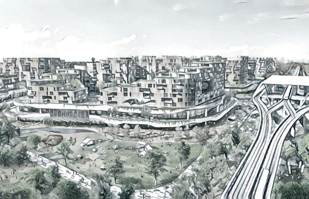 Все нужные для жизни объекты разместят в 5-минутной пешей доступности, а до другого конца города можно будет доехать за 20 минут — по скоростной железной дороге.