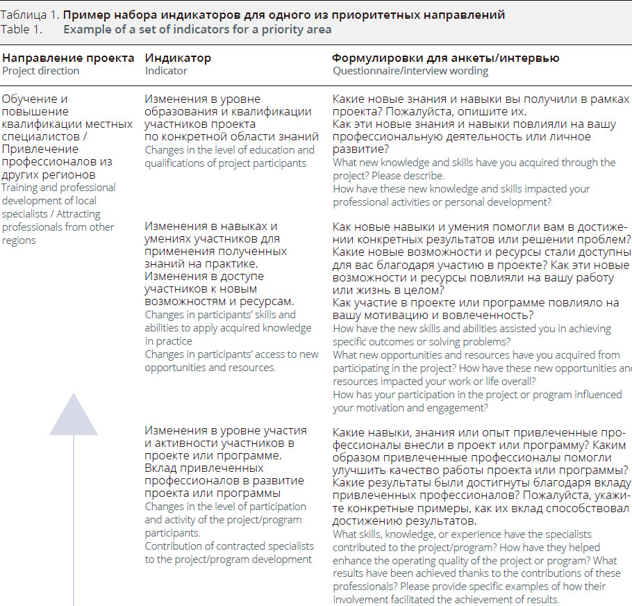 When the project team believes that existing indicators fail to adequately capture the project’s impact, or if there are changes in the thematic areas supported by the Fund, the list can be supplemented. Such modification is conducted according to a defined algorithm. For new indicators, a universal formula is suggested: “What changes have occurred in the area of... ? How do you assess the project’s contribution to these changes? How do these changes apply to you?” The quantitative assessment scales for these changes are akin to those used for the primary (universal) list of indicators.