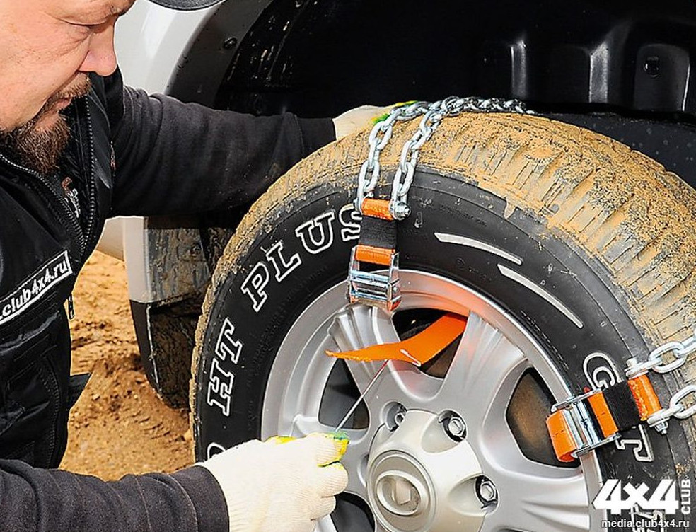 Но это долго, дорого и не всегда оправдано. А есть ли какая-нибудь альтернатива? Один из самых простых вариантов – использование «браслетов» противоскольжения. Традиционно считается, что эти устройства полезны только зимой, в глубоком снегу или на льду. Однако, на самом деле, они значительно увеличивают проходимость машины на любой поверхности и в любых условиях. Каков же принцип их работы? Устройства, надетые на колесо, превращают его в подобие шестерёнки, способной цепляться за что угодно, по примеру гусеницы трактора. Различия только в конструкции и способе надевания. Для монтажа на колесо одних цепей нужно поддомкрачивать машину, другие приходится расстилать и наезжать на них, но самые актуальные браслеты не требуют подготовительных действий. Их можно надеть в момент, когда они действительно нужны, даже если машина уже застряла, в отличие от цепей, которые нужно устанавливать заранее. Однако среднестатистический владелец стандартного внедорожника или кроссовера, едва ли станет утруждать себя сначала монтажом, перед преодолением сложных участков, а затем их последующим демонтажом. Кому охота пачкаться? Поэтому наиболее простой способ повысить проходимость в нужный момент, это использовать браслеты. Их можно бросить в багажник и доставать оттуда при необходимости. К счастью, много