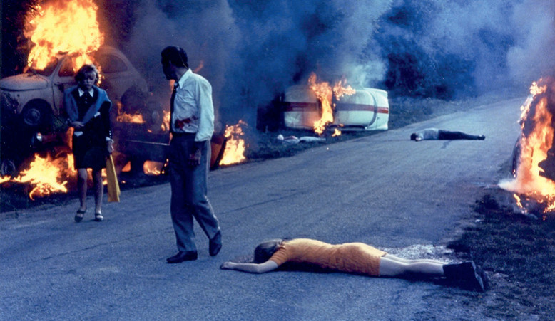 К 1967-му Годар погрузился в период маоизма, поэтому «Уик-энд» пропитан идеями социализма. Эта фантасмагория высмеивает буржуазию в ее погоне за комфортом и статусом. Влюбленные планируют убийство отца и отправляются в путешествие за наследством. Сюжет постепенно уходит от реальности. А чтобы зритель не усомнился в сюрреалистичности, Годар ломает четвертую стену: один из персонажей открыто заявляет, что он – только персонаж. Финальный титр гласит: «Конец истории. Конец кинематографа».