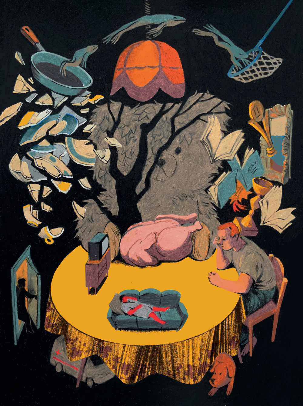Рассвело. Она лежит вся в мокром, как белье в тазу, и кожу щиплет ей от соли. Больно, не сдвинуться никак, тело окаменело, будто налилось водой. Курица белеет мертвым боком у двери: ускользнула с противня, когда она упала. Этот белый бок цепляет ее взгляд, взглядом она как будто чувствует липкость и холод мертвой кожи, пупыри на грудке и обрубке шеи.