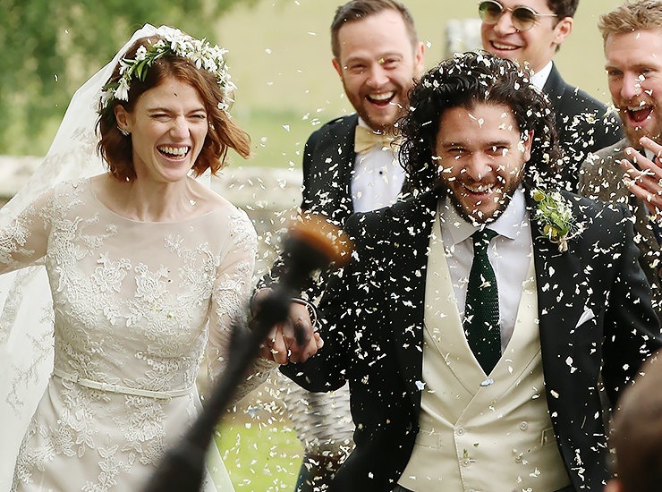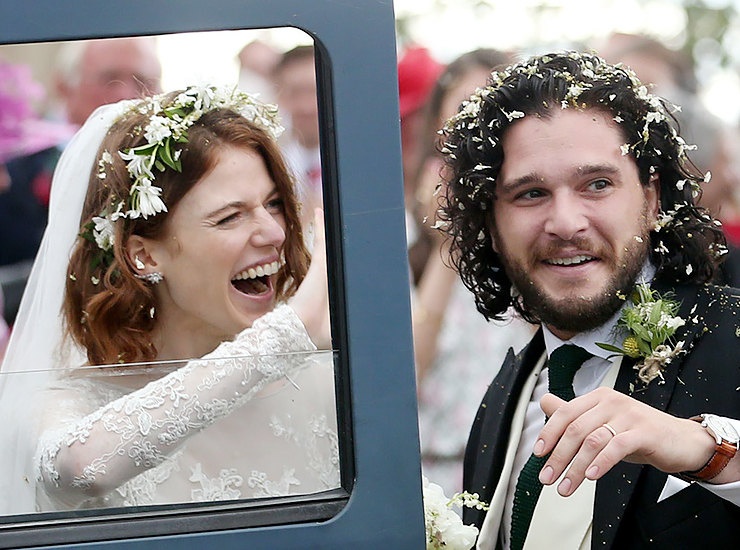 Актеры сериала «Игра престолов» Роуз Лесли и Кит Харингтон поженились этим летом. Свадьба получилась на манер культового сериала и проходила в старинном замке Уордхилл в Шотландии. Хрупкая невеста предстала в образе лесной нимфы — в полупрозрачном нежном платье от Elie Saab и венке из живых цветов на роскошных рыжих волосах.