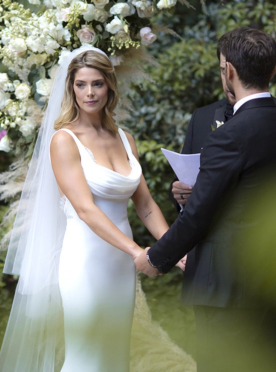 Звезда киносаги «Сумерки» Эшли Грин вышла замуж за бизнесмена Пола Коури только спустя полтора года после помолвки. Молодожены долго планировали свадьбу и в итоге отпраздновали ее в Калифорнии в кругу друзей, знакомых и родственников. Для церемонии Эшли выбрала полупрозрачное платье дизайнера Wendi Williams-Stern с объемными цветочными аппликациями, а на свадебной вечеринке поразила всех гостей прямым платьем с глубоким декольте.