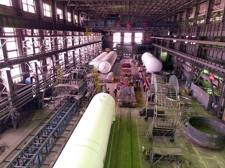 Достаточно большая загрузка была для производства. Было приятно заходить в 13 цех и видеть, что весь пролет заставлен в разной степени готовности внутренними сосудами и кожухами резервуаров.