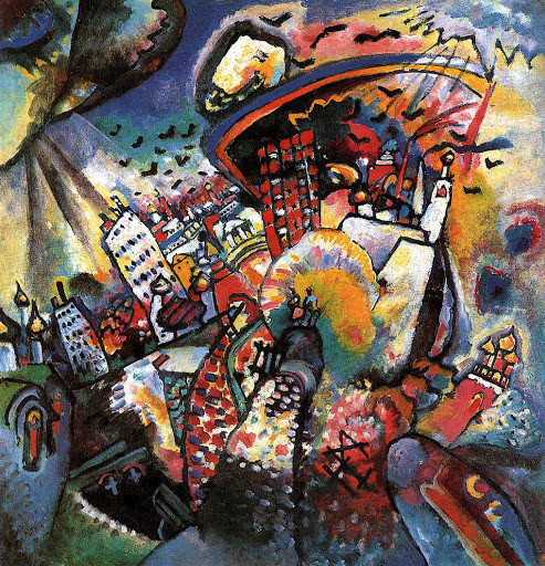 Василий Кандинский на картине «Москва I» представил свой взгляд на центр города: в зданиях можно узнать городские церкви и Большой театр, видна также брусчатка Красной площади. На фоне Москвы — влюбленная пара: возможно, ее прототипами стали сам Кандинский и его жена Нина Андреевская. При помощи ярких красок и четких линий он создал на холсте образ большого, шумного, подвижного города. «Москва: двойственность, сложность, высшая степень подвижности, столкновение и путаница отдельных элементов внешности, в последнем следствии представляющей собою беспримерно своеобразно единый облик, те же свойства во внутренней жизни, спутывающие чуждого наблюдателя (отсюда и многообразные, противоречивые отзывы иностранцев о Москве), но все же в последнем следствии — жизни, такой же своеобразно-единой. Эту внешнюю и внутреннюю Москву я считаю исходной точкой моих исканий. Она — мой живописный камертон».