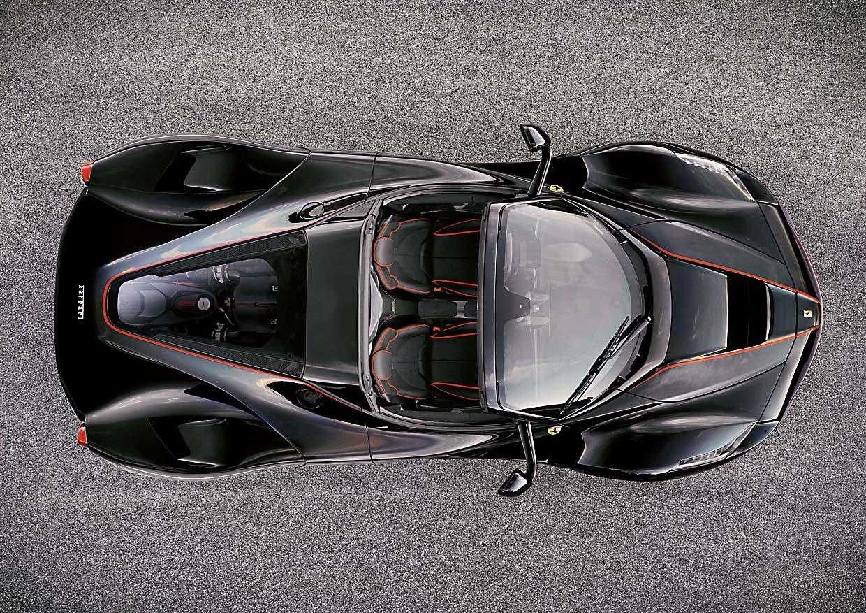 Одно ясно: с тех пор как Флавио Манцони стал у руля центра стиля в Маранелло, не только новые модели, но и версии моделей уже существующих получаются небанальными. Открытая LaFerrari не стала исключением. Дизайнеры не ограничились удалением крыши: они создали новый стилистический язык, который особенно заметен при взгляде сверху, подчеркивающем пересечение двух треугольников, окаймленных красной линией. Силовая установка прежняя – 800-сильный V12 в сочетании со 163-сильным электромотором, а вот над шасси и аэродинамикой дополнительно поработали. Soft top (съемный верх) сделан из карбона. Интересно, что из 209 экземпляров уже забронировали 200.