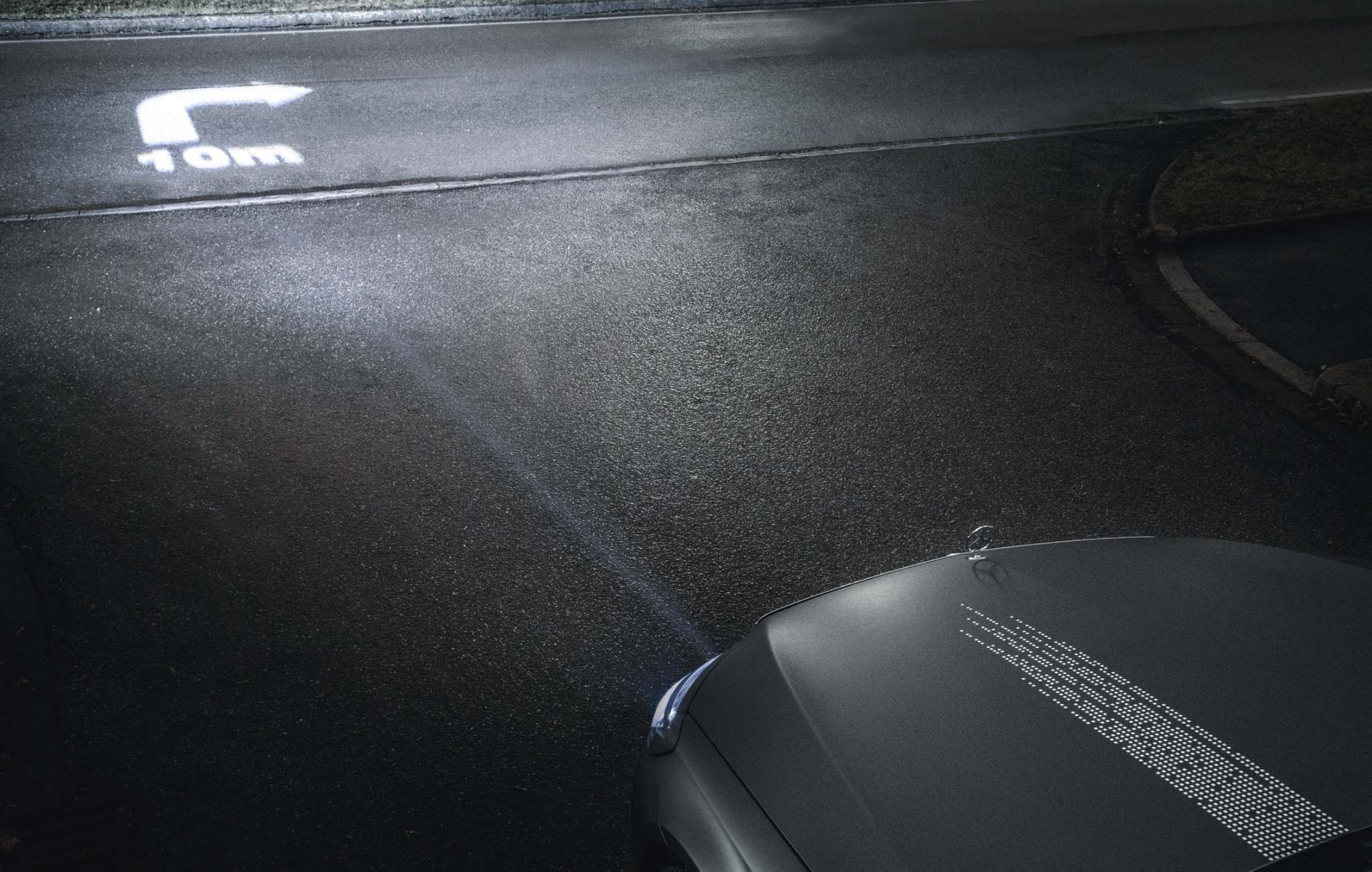 Указания навигации будут проецироваться на асфальт, как и дорожные знаки. Это станет возможным за счет революционных цифровых фар, оснащенных миллионами микрозеркал.
