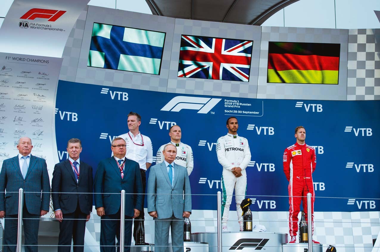 Этап «Формулы-1» на Сочи Автодроме — вещь в себе. Сюда ездят не ради наслаждения красивыми гонками — для этого в календаре есть по-настоящему зрелищные трассы в Бельгии или Италии. В Сочи ездят тусоваться. С самого первого Гран-при России 2014 года кубок победителю вручает Владимир Путин. Это единственный президент, который ежегодно приезжает на домашнюю гонку «Формулы-1» и общается с призерами в закрытой комнате для гонщиков — на других этапах в эту комнату не пускают посторонних. Но если раньше ощущение некой натужности происходящего возникало только после финиша, то в этом году участники обеспечили странные впечатления прямо по ходу гонки.