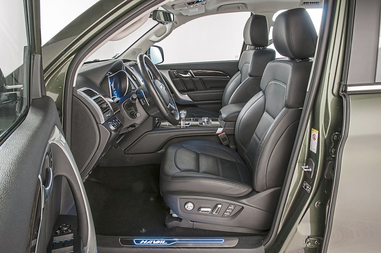 С функциональной точки зрения в экстерьере H9 ничто не вызывает раздражения. Почти. На наш вкус, интегрированные подножки немного противоречат целям, ради которых покупают настоящий внедорожник, — они заранее ставят определенный предел возможностям автомобиля за пределами асфальта. Ну и еще распашная дверь багажника открывается вправо, хотя удобнее было бы наоборот, влево, но это вполне простительная мелочь. Салон оформлен в той же сдержанной манере, что и кузов. Сиденье водителя удобное, с плотной набивкой, подушка не покажется короткой даже седокам ростом выше среднего. Кресло снабжено полным набором электрорегулировок (даже поясничного подпора), так что найти идеальную посадку получится быстро.
