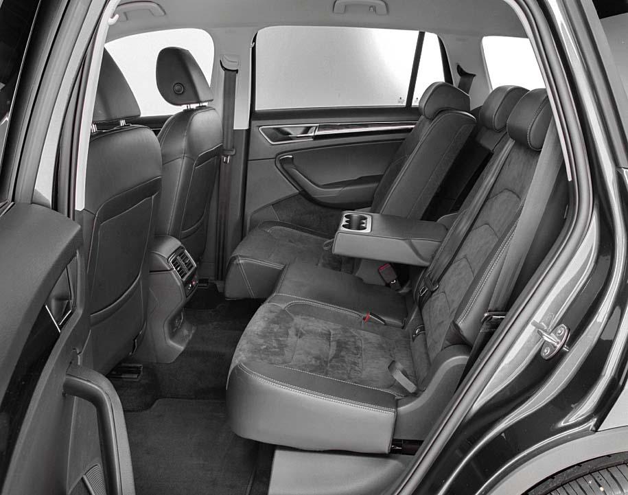 Так что же конкретно внутри тестового 2.0 TDI 4x4 DSG? На передних местах можно сидеть вразвалочку в прямом смысле слова. Посадка довольно высокая, 66 см от земли. Сами кресла – чистый шик, если выбрать опциональные с комбинированной обивкой (кожа и алькантара) за 81 100 руб. В тестовом автомобиле была предусмотрена только одна розетка на 12 В на втором ряду, но за 7700 руб. можно заказать USB-слот и розетку на 230 В.