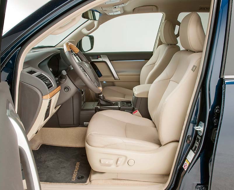 Сел за руль, осмотрелся — и вот уже нахлынули давно знакомые чувства, неподвластные новым SUV премиум-класса. Посадка в японском внедорожнике высокая, ноги водителя согнуты в коленях. Остекление щедрое, стойки не особо толстые, на монументальной центральной консоли — 8-дюймовый дисплей мультимедийной системы Toyota Touch 2. И, конечно, в салоне очень просторно. Сиденья стоят в три ряда, можно ехать всемером. Правда, на заднем ряду не очень удобно, да и доступ туда затруднен.