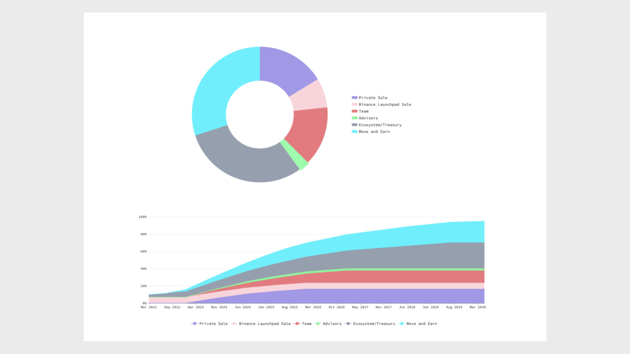 На ней видно, когда и в каком объёме будут разблокированы GMT. Особое внимание стоит обратить на красный раздел “Team” и фиолетовый “Private Sale”.