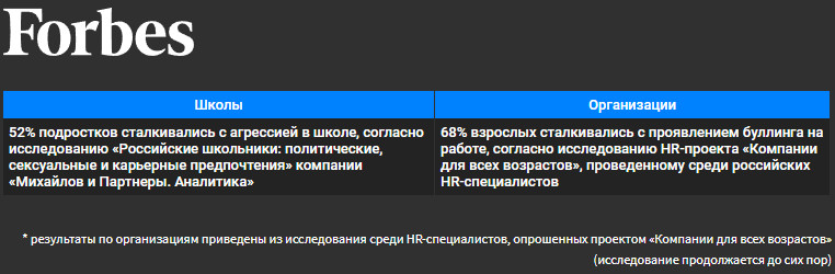 Травля в детских и взрослых коллективах проходит по-разному. Анастасия Лазибная, основательница портала «Баба-Деда» и HR-проекта «Компании для всех возрастов», и Ольга Журавская, соучредительница АНО БО «Журавлик», основательница проекта «Травли.net», провели исследование на эту тему и рассказывают о его результатах