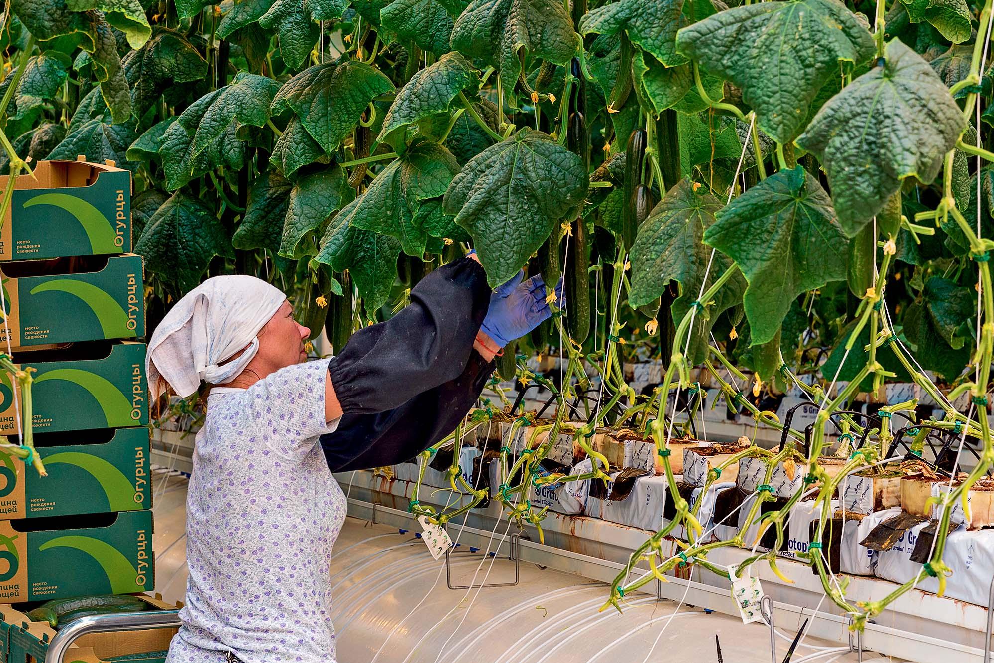 Длинные ряды грядок напоминают больницу, в которой каждый куст огурцов и помидоров — пациент на индивидуальной системе жизни обеспечения. В таких условиях в теплице созревают 120 т салата, огурцов и томатов ежедневно. По словам регионального представителя голландской компании Grodan (крупнейший производитель грунта и тепличных продуктов) Алексея Куренина, на сегодняшний день «Липецкагро» — это «самый большой работающий и коммерческий успешный пример использования теплиц пятого поколения в России».
