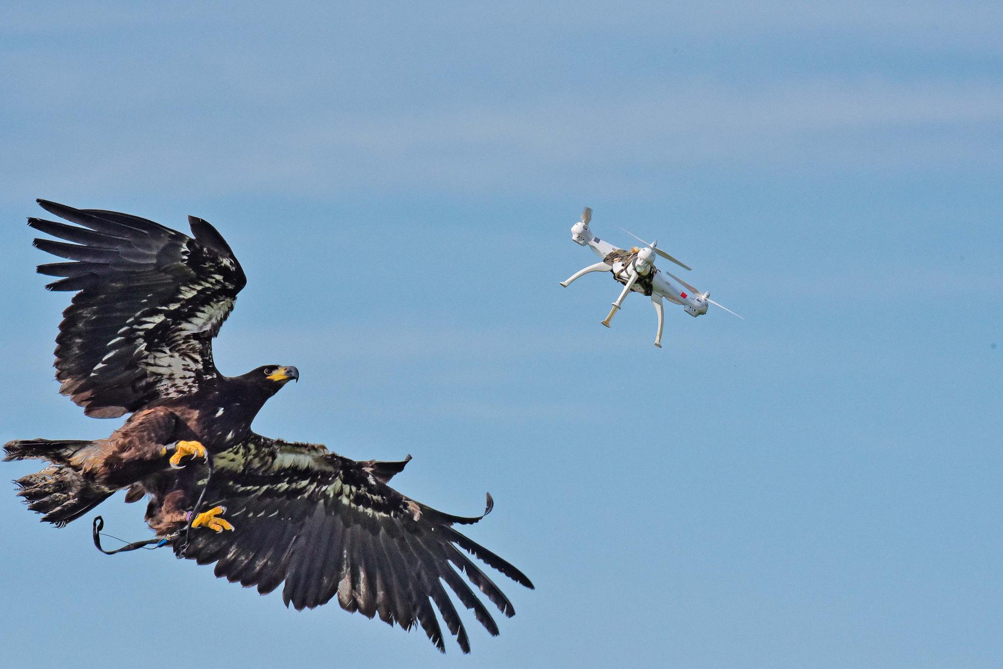 Национальная полиция Нидерландов в сентябре объявила, что закупит четырех орлов, натренированных на перехват дронов. Это решение стало результатом серии испытаний эффективности птиц в борьбе с беспилотными летательными аппаратами, которые полиция проводила вместе с голландским стартапом Guard From Above, придумавшим использовать орлов в этих целях. Таким образом, Голландия станет первой в мире страной, официально зачислившей пернатых хищников в подразделение по борьбе с дронами. «Мы используем все технические решения, включая электромагнитные импульсы, лазеры. И хищные птицы — это один из проектов, возможно, один из самых эффективных», — заявил агентству «Франс Пресс» Мишель Бэйтен, возглавляющий эту программу в полиции. На фото — обученный ловец дронов, двухлетняя самка белоголового орлана по кличке Охотница.