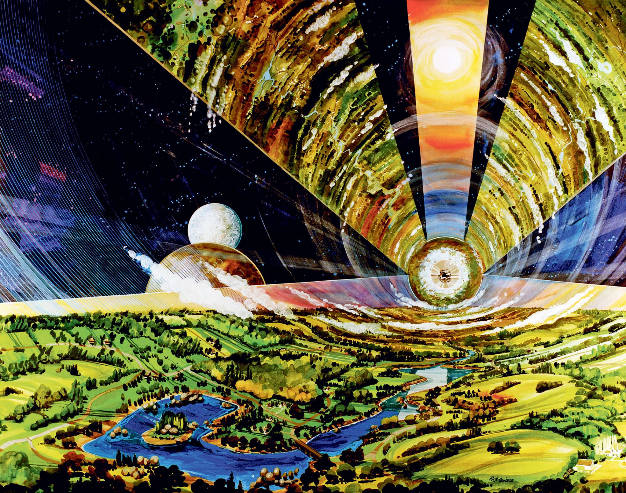 Оптимальным вариантом Безос называет так называемые колонии О’Нилла, разработанные учеными во главе с физиком Джерардом О’Ниллом. Это цилиндрические конструкции, каждая из которых может вместить до миллиона человек. Они будут иметь свой климат-контроль, города, фермы и даже пляжи. «Это как лучший день на Мауи, который продолжается весь год, — обещает Безос. — Никаких дождей. Никаких землетрясений. Люди захотят здесь жить».