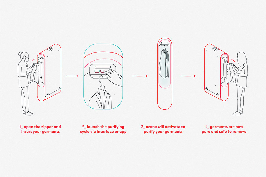 Глобальная пандемия коронавируса привела к росту запросов на безопасную среду и к новым решениям от дизайнеров, которые решали бы эту задачу. Например, итальянский дизайнер Карло Ратти разработал футляр Pura-Case, который очищает одежду с помощью озона.