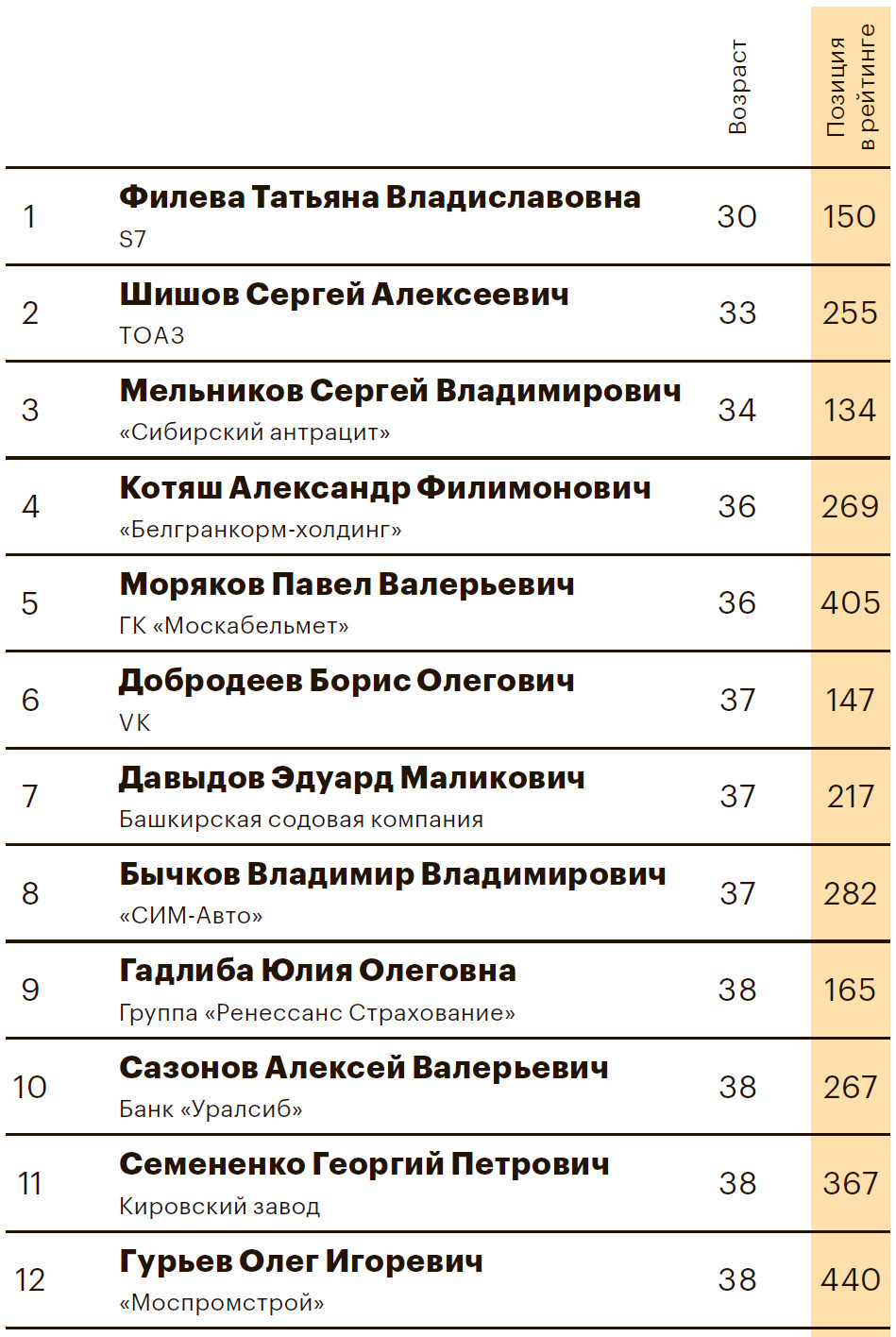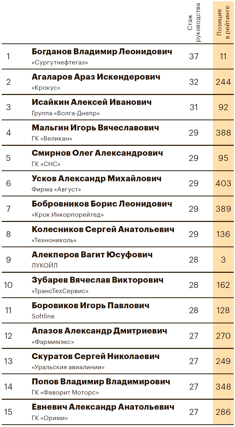 среди руководителей 644 компаний, присутствующих в рейтинге