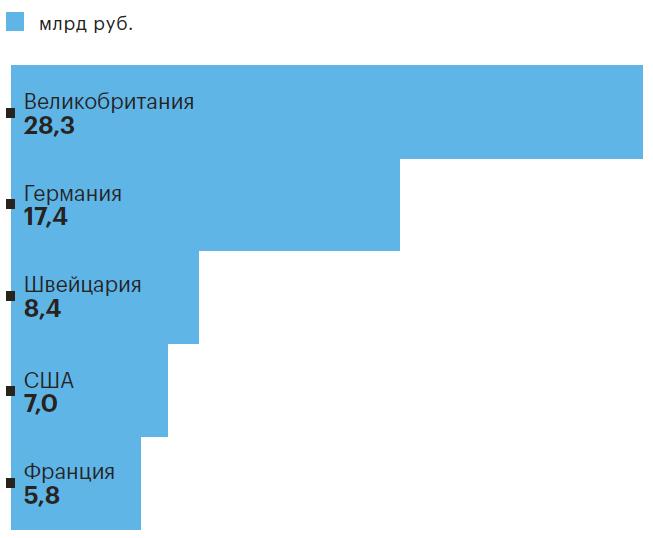 Топ-5 стран — партнеров РФ по перестрахованию*