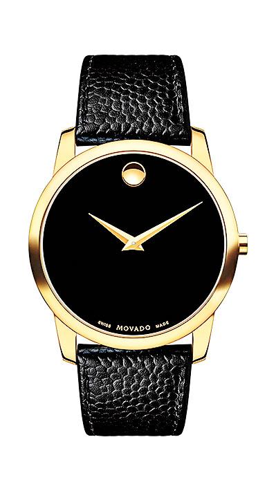 История швейцарской часовой марки из Ла-Шо-де-Фона началась в 1881 году, а ее название восходит к слову на эсперанто. Movado в переводе с искусственно созданного языка значит «всегда в движении» — именно это слово, по мысли основателя фирмы Леопольда Эчила Дитешейма, заключало в себе суть функционального прибора, отображающего текущий момент времени. В 1947 году художник Натан Джордж Хорвит придумал блестящий кружок на 12-часовой отметке, обозначавший Солнце в зените; собственно, кроме этого кружка и стрелок, на циферблате ничего не было. Яркая запоминающаяся деталь помогла часам Movado стать музейным экспонатом: в 1960 году Музей современного искусства в Нью-Йорке отобрал их для своей постоянной экспозиции. С тех пор часы носят название Movado Museum Watch.