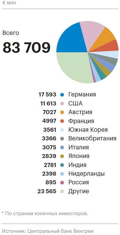 Растут инвестиции в более технологичные сферы Венгрии, отмечает старший аналитик Центра экономического прогнозирования Газпромбанка Eвгений Гранкин. По его данным, ПИИ поступают преимущественно в торговую сферу, науку и финансовую отрасль.