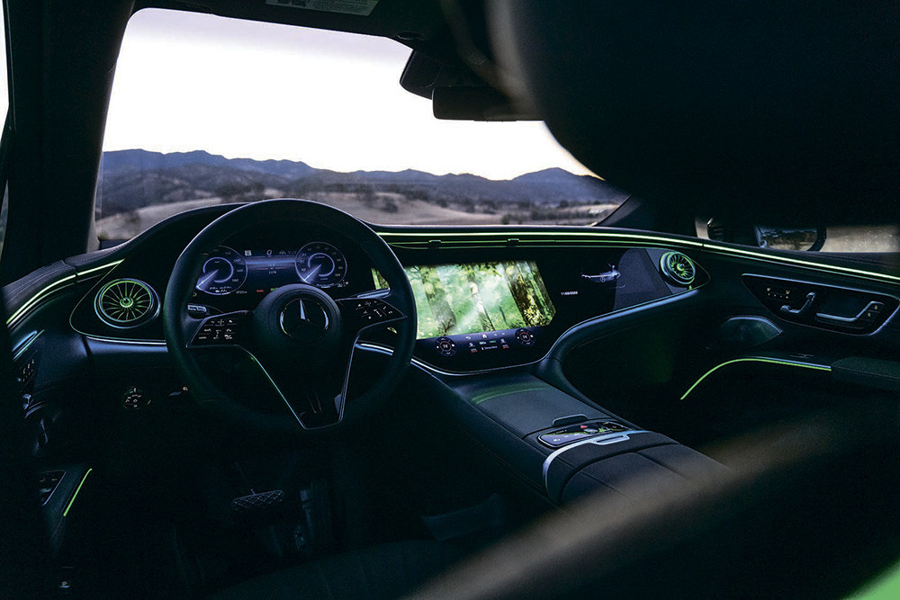 Электрический флагман Mercedes-Benz на этот раз предстал в виде кроссовера. В Штутгарте его называют «заново изобретённым внедорожником и переосмысленным электромобилем». Автомобиль построен на той же платформе MEA (Modular Electric Architecture), что и лифтбек EQS, — это очень большая машина, способная легко вместить семерых и обеспечить им высочайший уровень комфорта. В интерьере — царство нежнейшей кожи и ценных пород дерева, но всё внимание приковано к MBUX Hyperscreen — сплошной стеклянной поверхности во всю ширину салона, которая скрывает сразу три дисплея: приборный экран диагональю 12,3 дюйма, центральный сенсорный дисплей на 17,7 дюйма и ещё один «тачскрин» диагональю 12,3 дюйма перед пассажиром. По последней моде владельцы EQS SUV Mercedes могут «докупать» новые функции
