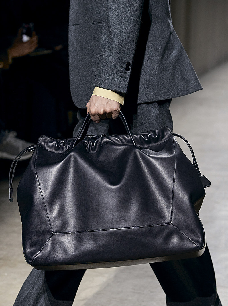 Времена, когда мужчины носили с собой лишь несколько папок, газету и пригоршню монет, ушли безвозвратно. Современная жизнь требует сумки, в которую поместятся лэптоп, зарядки, наушники, гаджеты для занятий спортом. Да и в магазин за продуктами после работы иногда надо забежать. Новая Cabas 50 достаточно объёмная для того, чтобы в неё вошло всё вышеперечисленное. И даже немного больше. Мягкие формы идеально сочетаются с современным расслабленным кроем, удобная кулиска на шнурке вместо застёжки тоже весьма к месту. Лишённая всяких украшательств, за исключением разве что нескольких графичных швов, эта сумка — ода исключительному качеству кожи.