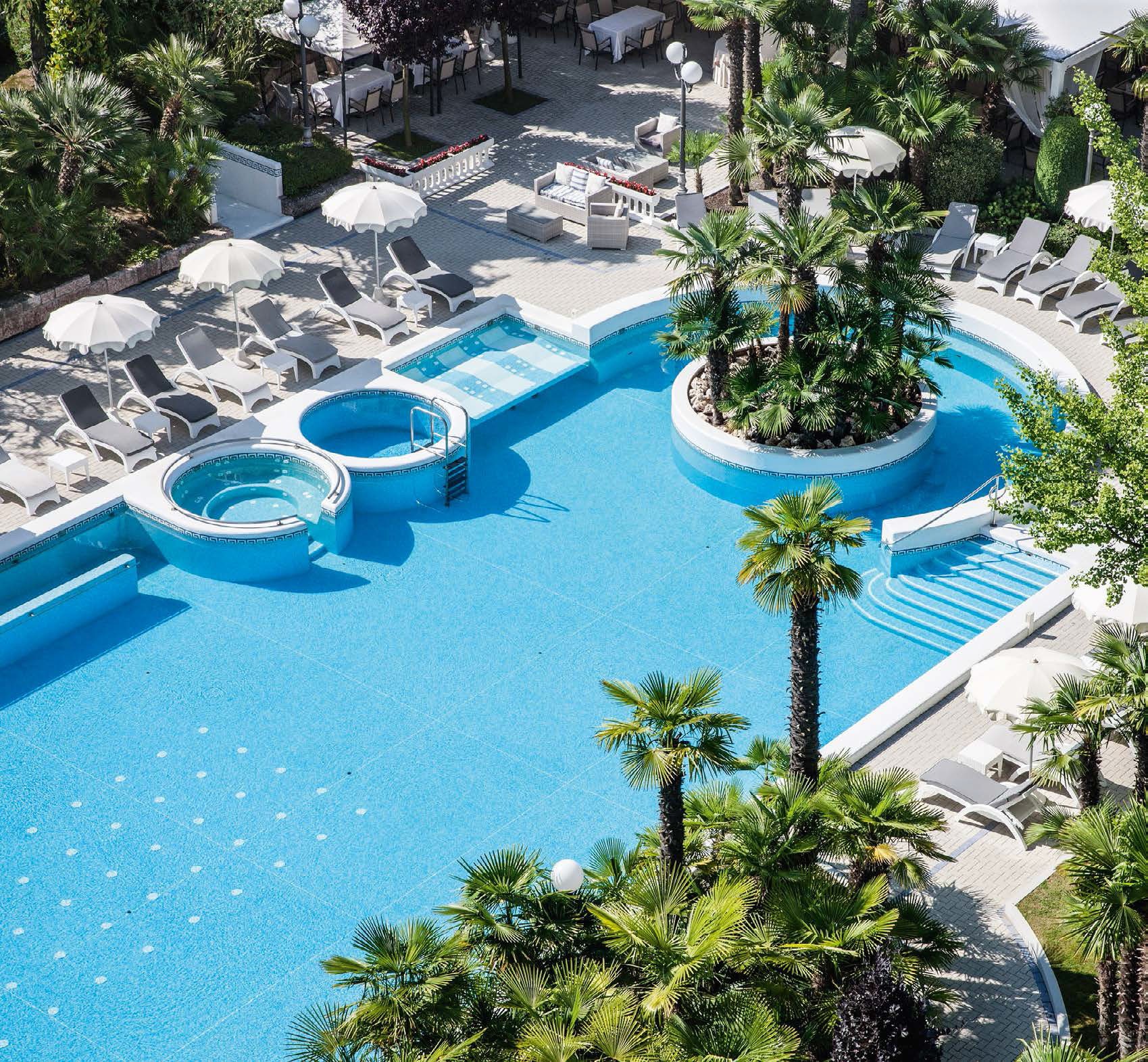 Слава этого отеля держится не только на минеральных источниках и созревающих на их воде лечебных грязях. Сервис безупречен, номера просторны, тропический парк с потайными тропами радует глаз, а ресторан более чем достойный, хоть и без мишленовских регалий. Именно таким должен быть эталонный санаторий на водах, куда приезжают поправить здоровье или похудеть. По сути, подход здесь к гостям клинический: медицинские тесты, строгий контроль врачей. Серьёзная бальнео терапия в Anti-Aging Thermal SPA (грязевые обёртывания, термальные ванны, ингаляции, антивозрастные программы) дополнена персональной диетой. В целом все эти меры способны помочь даже в таких непростых случаях, как хронический стресс, боли в спине, проблемы с венами и органами дыхания. А уж «обычный» релакс, сброс веса и омоложение гарантированы.