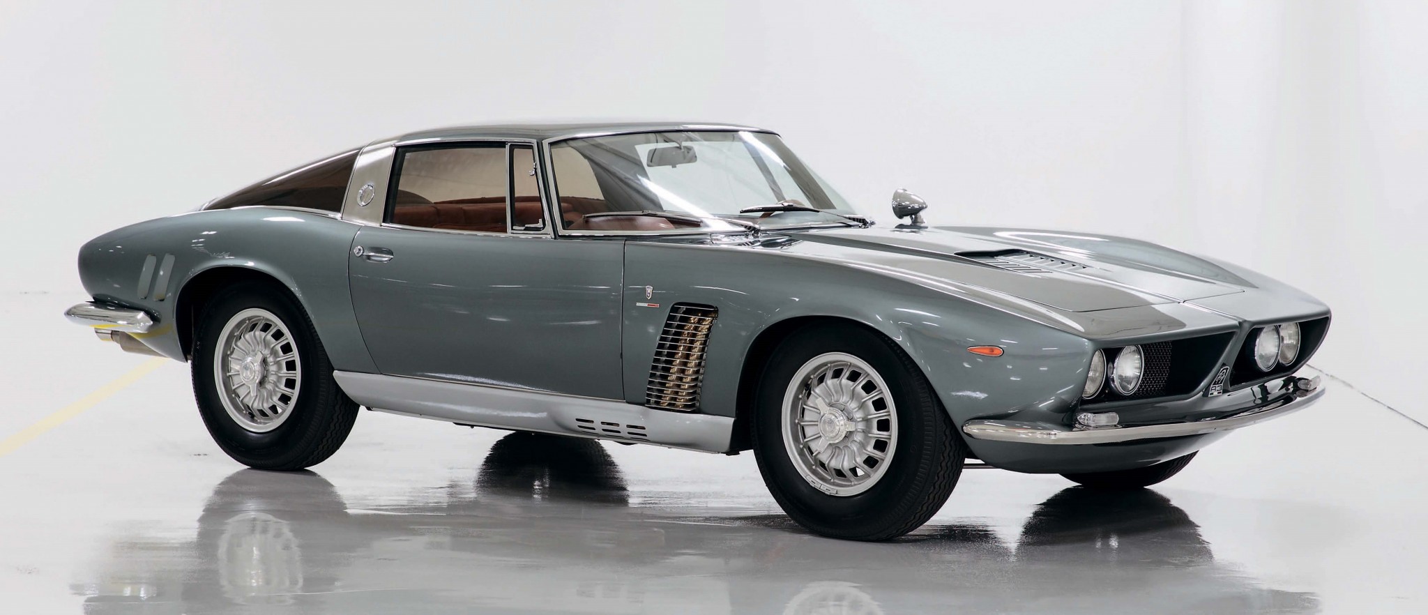 После Второй мировой войны в Италии, как и в Германии, экономика лежала в руинах, а население нуждалось в дешёвых средствах передвижения. Специализировавшаяся на холодильном оборудовании компания Iso (Isothermos) воспользовалась моментом и в 1953 году сменила профиль, превратившись в Iso Autoveicoli. Возглавлявший её Ренцо Ривольта наладил выпуск мотоциклов, скутеров и миниатюрных баблкаров Isetta (лицензию на последние он продал немецкому концерну BMW). Поправив финансовые дела, Ривольта нанял Джотто Биззаррини (инженера-кудесника, создавшего легендарную Ferrari 250 GTO), дизайнера Джорджетто Джуджаро и кузовное ателье Bertone, чтобы спроектировать автомобиль класса GT, способный конкурировать с Ferrari. Модель Iso Rivolta IR 300, представленная в 1962 году, была практичной и красивой, а мощный двигатель Chevrolet V8 объёмом 5,4 л и мощностью 340 л. с. позволял ей тягаться с самыми быстрыми машинами той эпохи. Затем появилась дизайнерски смелая модель Grifo, выпускавшаяся с 1965 года вплоть до закрытия компании в 1974-м. Здесь же мы видим прототип Iso Grifo в оригинальном кузове, который был впервые показан в 1963 году на автосалоне в Турине. Своим запоминающимся силуэтом он обязан молодому Джуджаро, создавшему за время сотрудничества с Bertone немало образцов дизайна, например, Alfa Romeo Giulia GT.